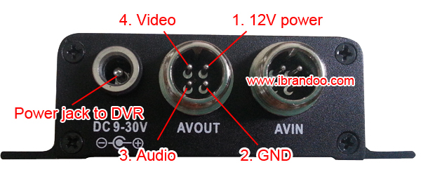 Back panel, avaition connectors at DVR side, give power to camera directly.