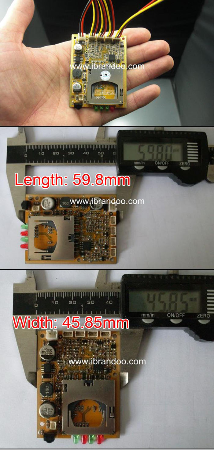 It is a micro size SD DVR module (45.8mm x 59.8mm). We open all functions for customized with UI, function, and also language. This DVR module has alarm I/O for recording start and stop and also RS232(TTL) communication.