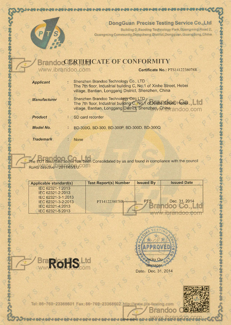 Rohs of SD camera BD-300G
