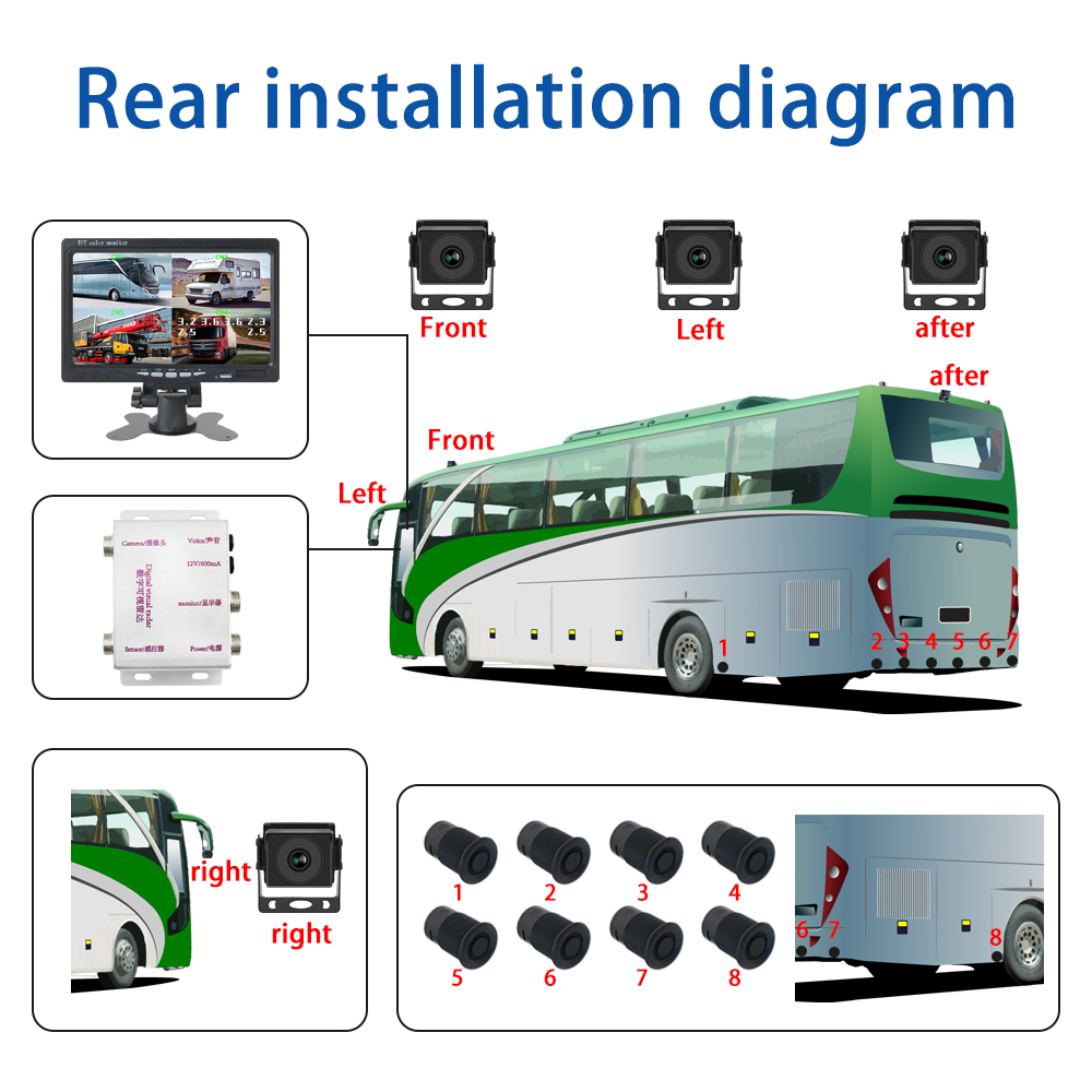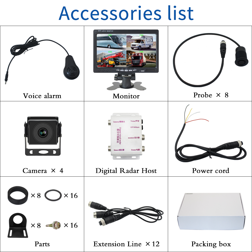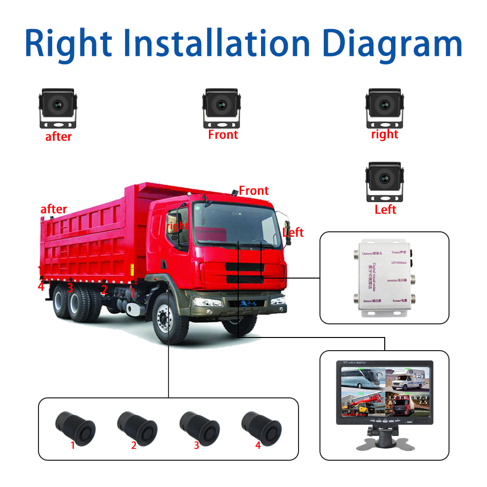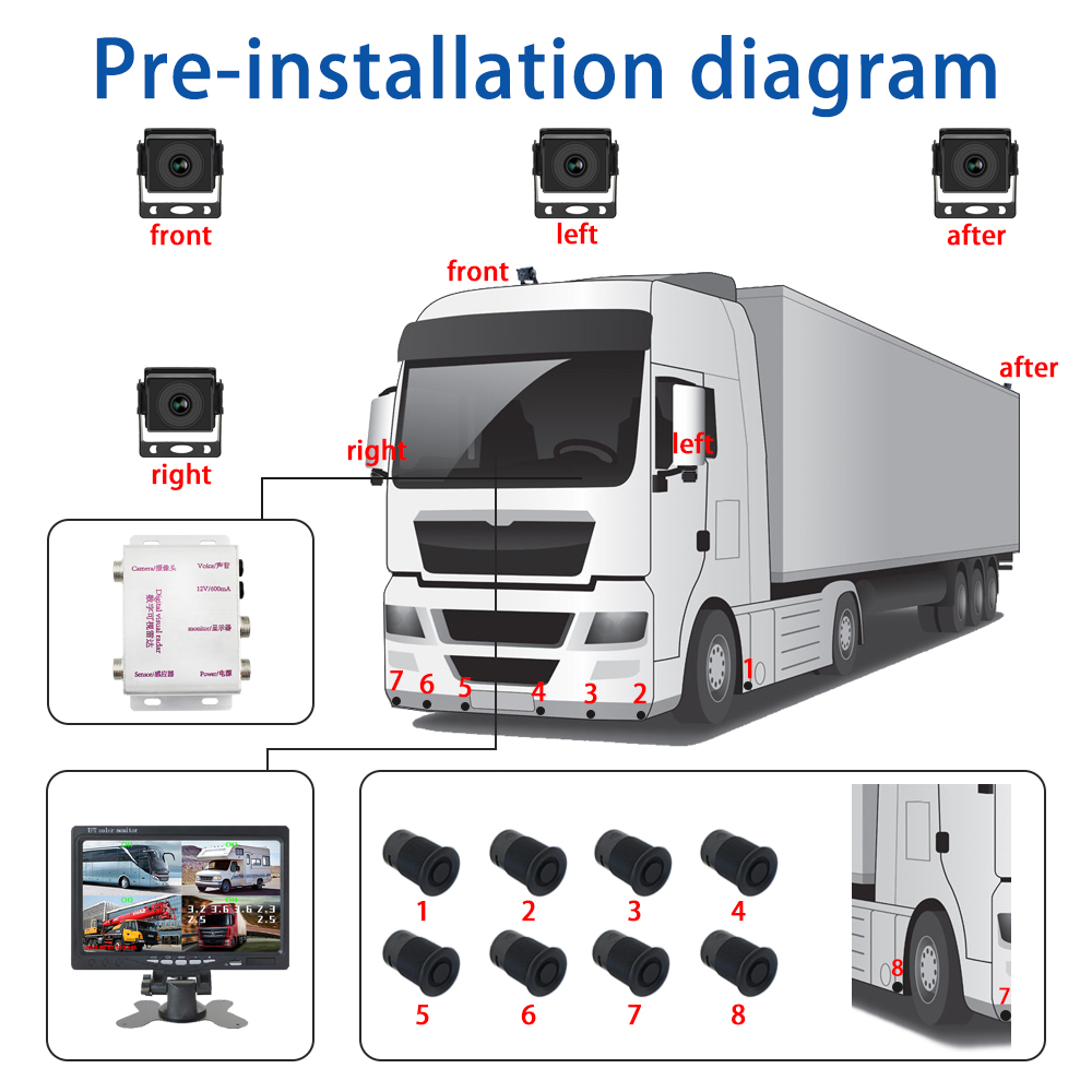 It's a radar video system designed for big truck. it's support 4 or 8 radar detector for driving assistant, and also has 4 AHD cameras for video capturing and recording.