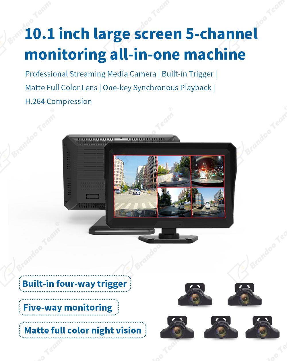 This is a 5 channel MDVR system. 10.1 inch IPS touch screen with build in DVR. Auto recording and parking recording both.