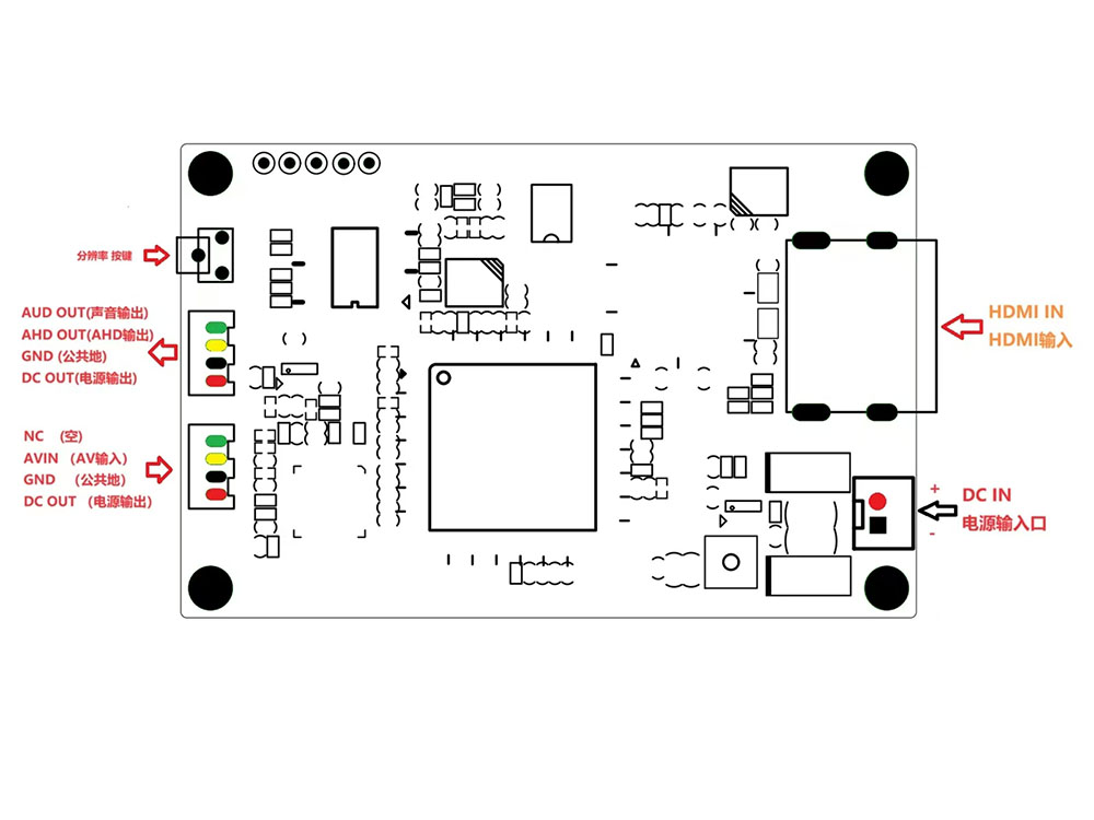 It is a video convertor which support AV signal and HDMI signal input, 1080P/720P AHD signal output. Audio output is also supported. One key to shift output resolution.