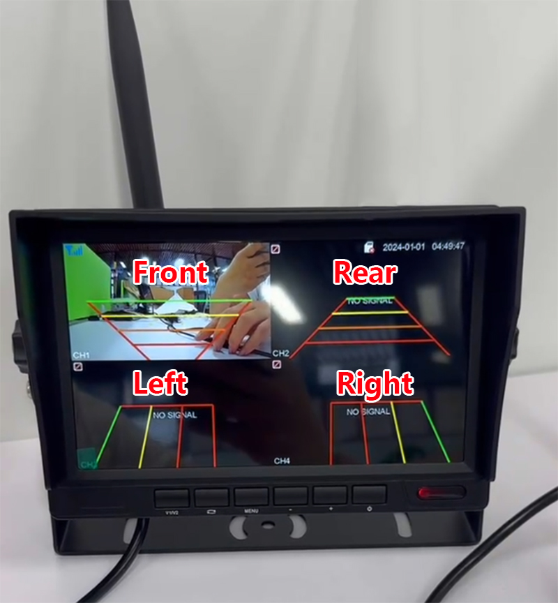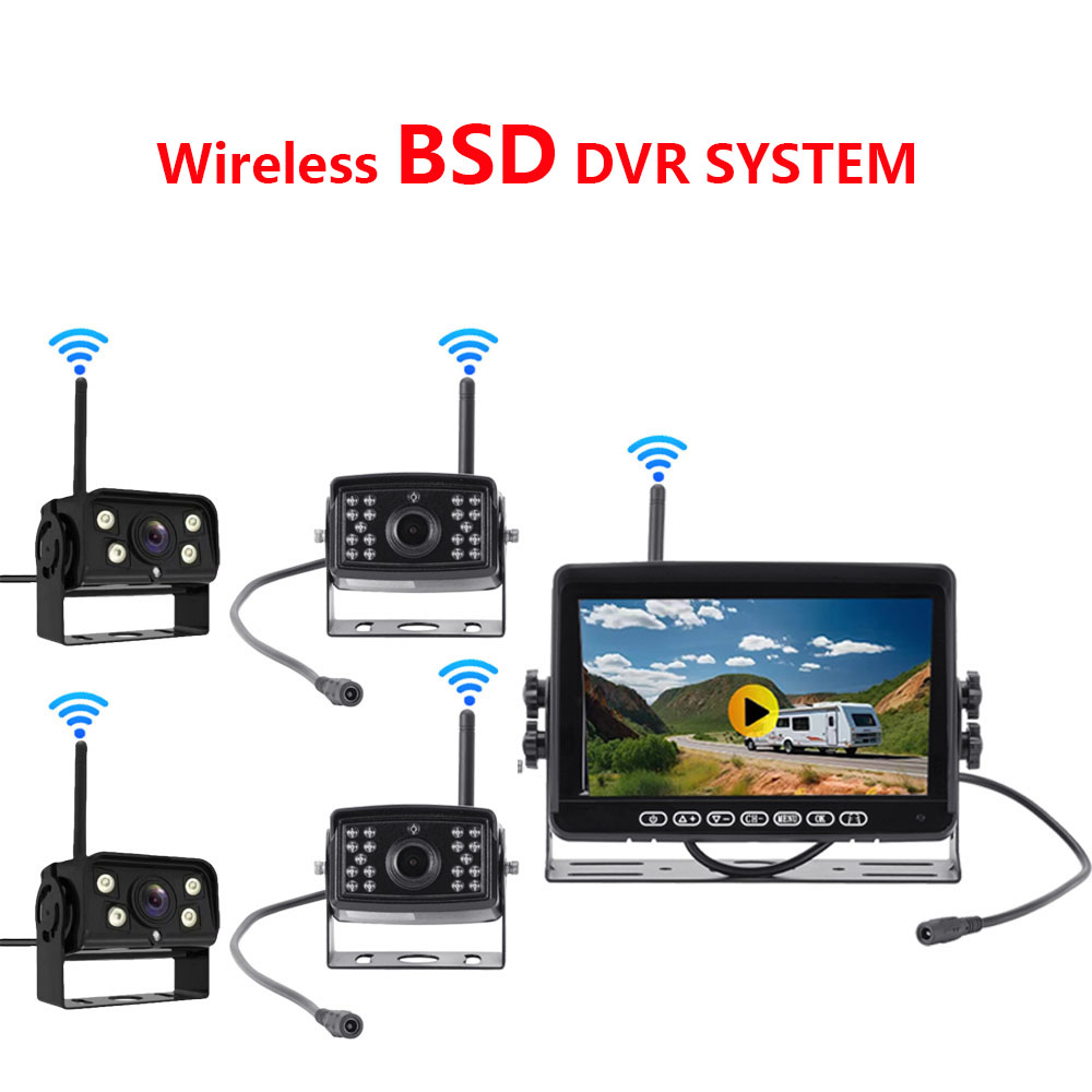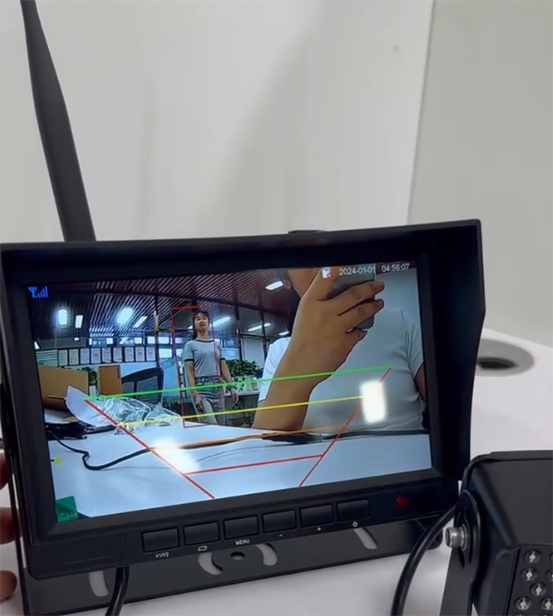 It is a Blind Spot Detection MDVR kit for big truck. The detection based on software and alert driver with "Di.Di.Di" tone on monitor once it be triggered. Cameras and monitor connected via wireless. Max. 4 cameras recording.