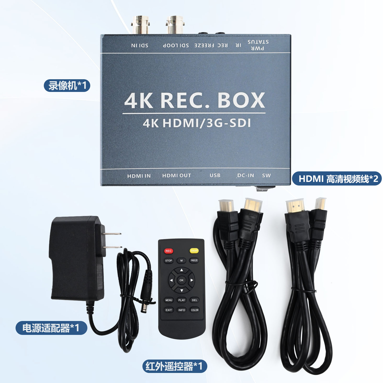 这是一款针对高清SDI,HDMI,DVI视频信号而研发的视频录像机,支持最高4K 1080P的录像画质,可以识别3G-SDI,4K HDMI,4K DVI视频信号。同时支持SDI环出及HDMI输出。USB端口支持外挂U盘或者移动硬盘用于储存录像。另外有独特的一键定格和激活画面的功能,广泛应用于各种商业用途。