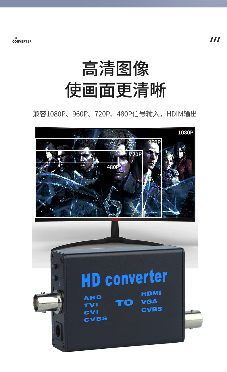 > 兼容1080P,960P,720P,480P等同轴高清信号