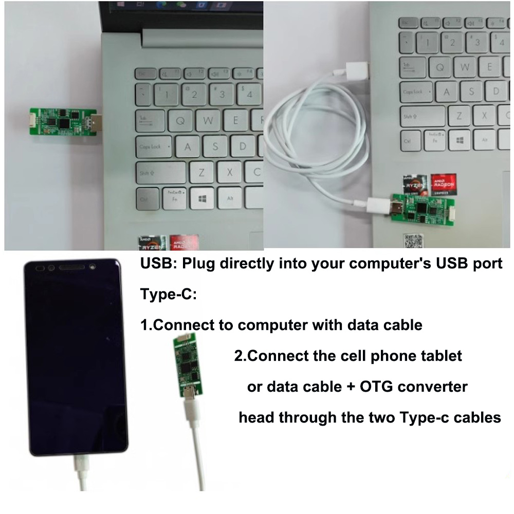 2、模块USB口或TYPE-C口接电脑、手机、平板等