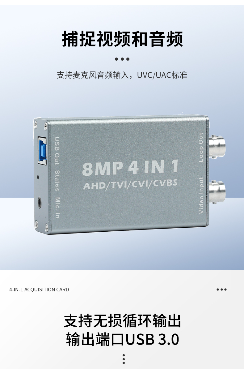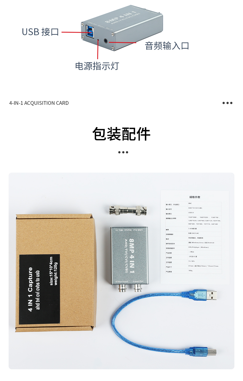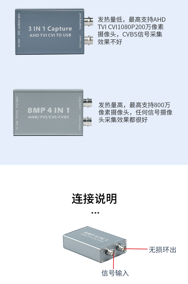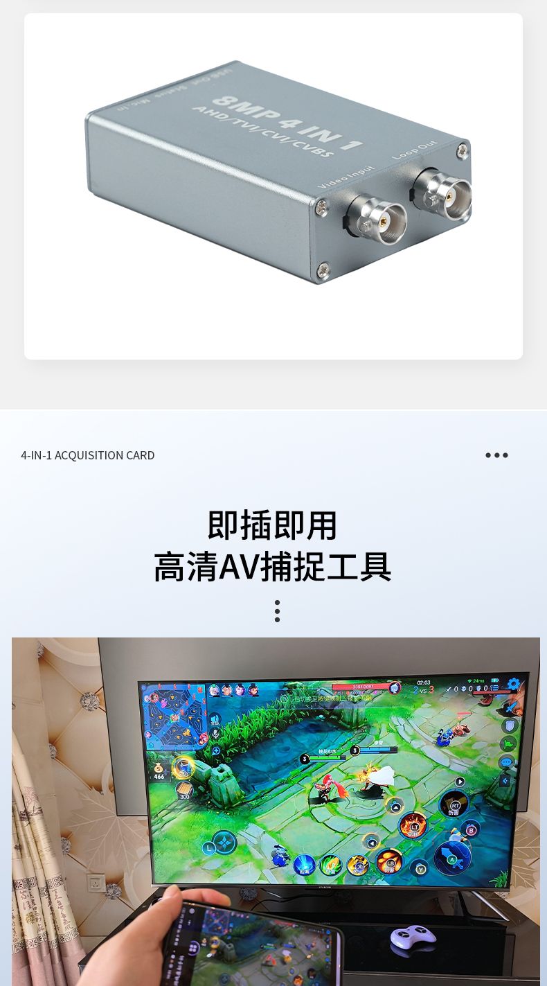 2、采集卡usb output通过USB线接电脑,或加OTG头接手机(免驱)