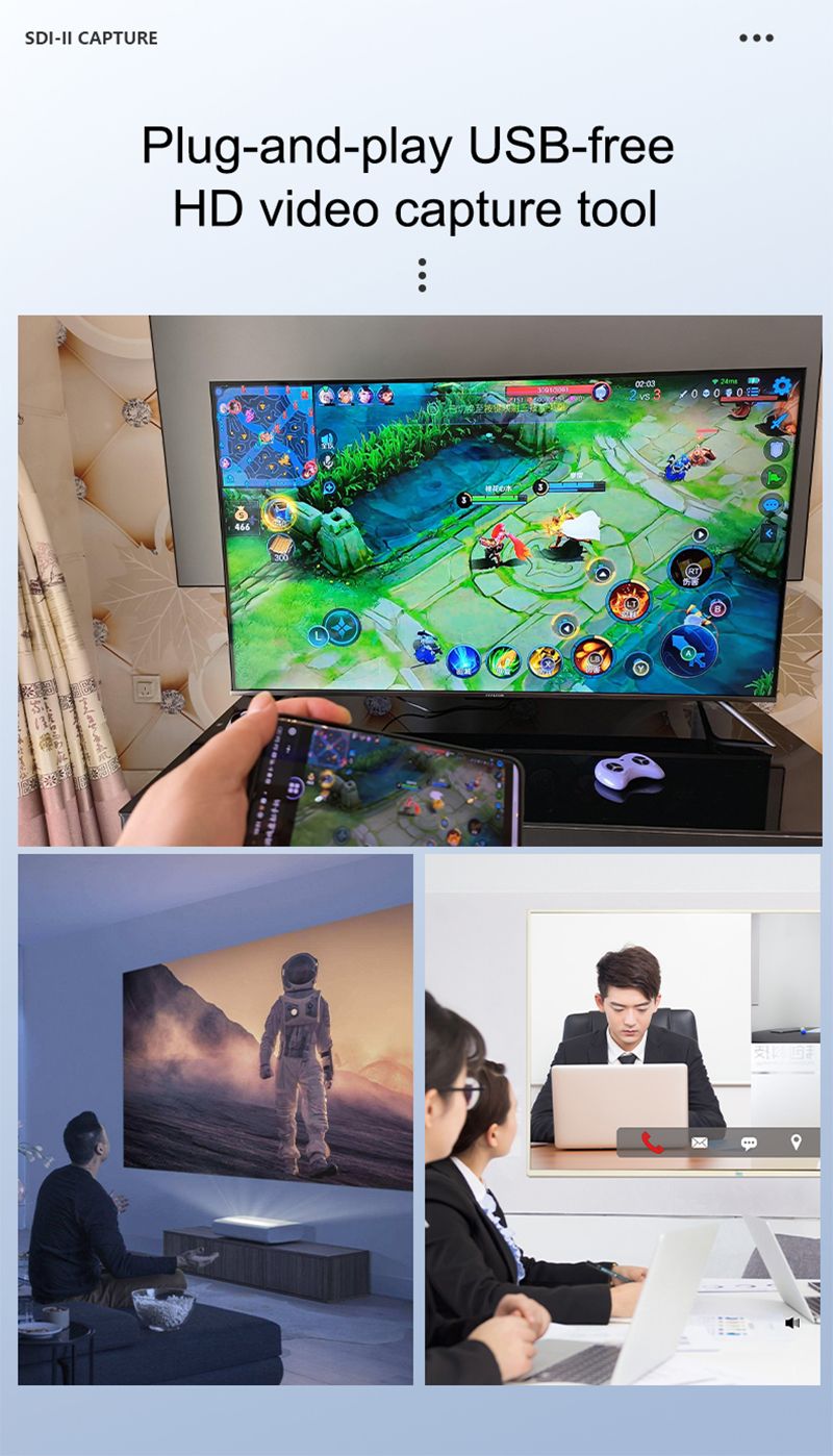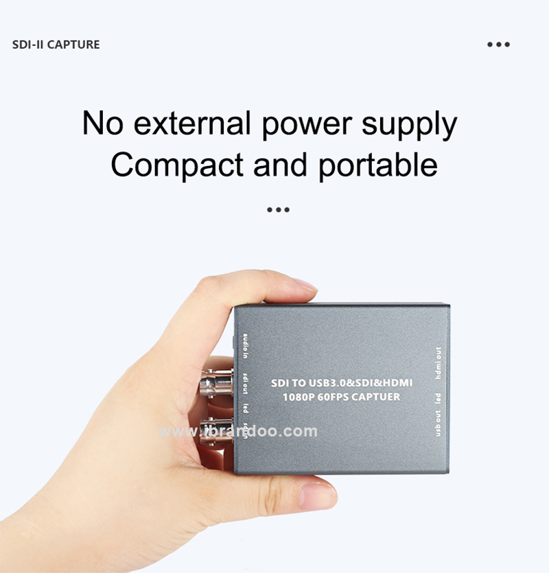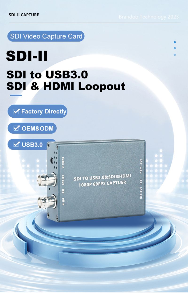 第2代SDI转USB视频信号采集卡是一款支持SDI信号输入,USB3.0最高输出1080P 60帧到电脑端的高清采集设备。支持3G-SDI DVI以及HDMl高清视频信号。该设备被广泛应用于医疗视频产品领域,包括内窥镜,腹腔镜,胸腔镜,关节镜,手术导航视频,手术显微镜摄像头,牙科摄像系统,血管造影(DSA)视频系统。在第1代产品的功能基础上,增加了SDI+HDMI无损环出功能。这是一款高性价比的符合UVC/UAC规范的广电级采集卡,该款机器可以兼容Windows系统、linux系统、安卓Android,MAC系统是一款即插即用、USB免驱的高清音视频采集工具。