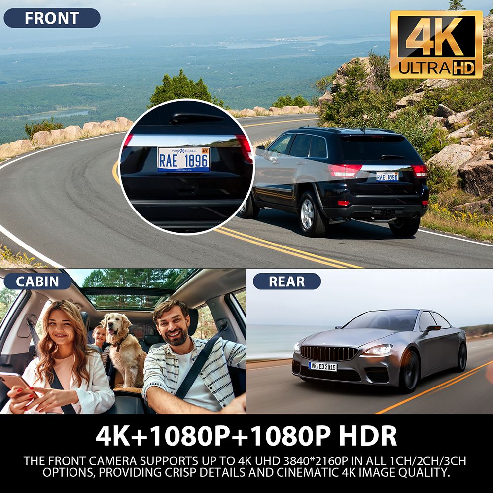 It is a high quality 3 channel dashcam kit developed on Novatek program, used SONY IMX678 camera. Support wifi and GPS.