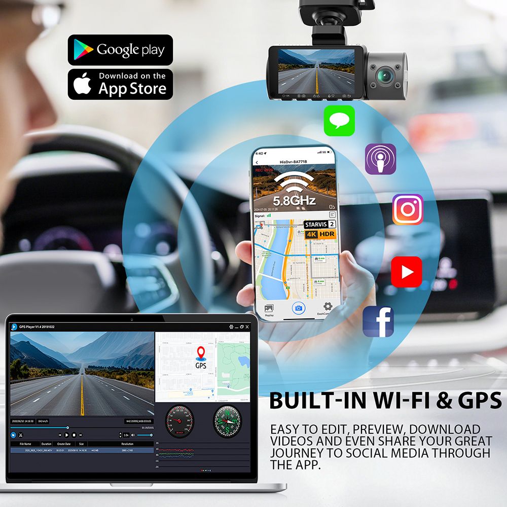 Novatek 3CH Dash Camera 4K+1080P WiFi GPS Model V58