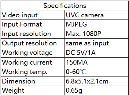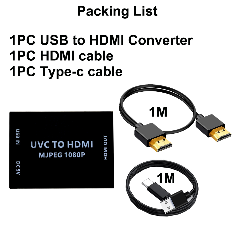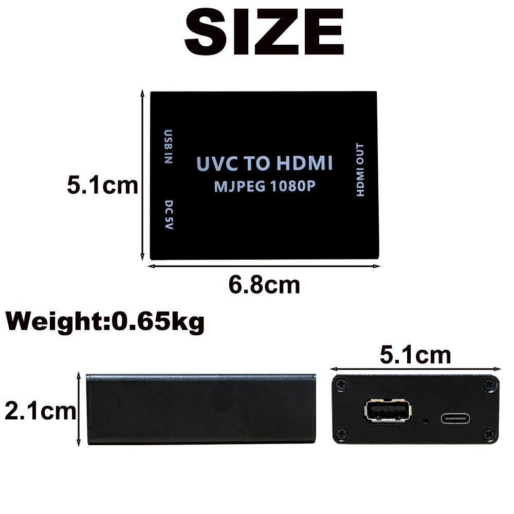 U2H is a video convertor which support UVC device to HDMI. it support UVC device input such like MJPEG 1080P USB camera, the HDMI output is 1.4a standard, 1080P 60HZ resolution.