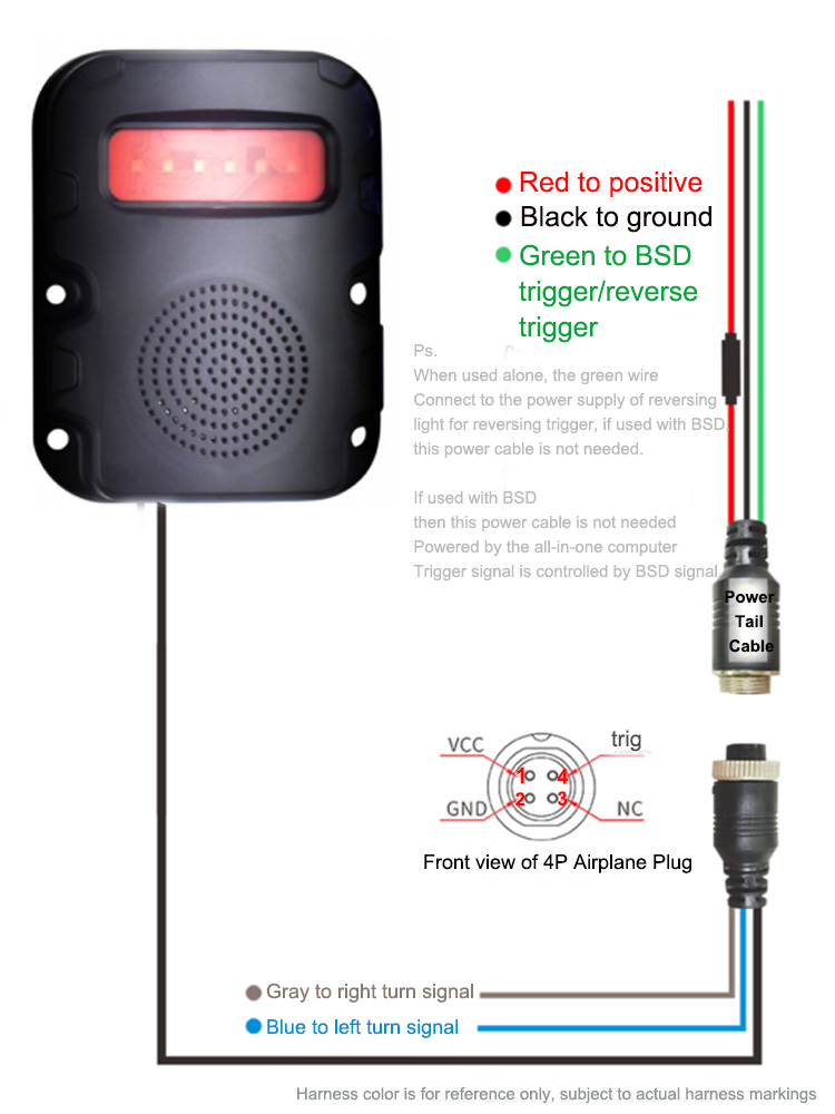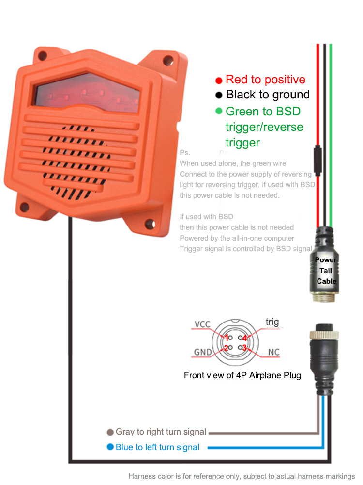 It is a 4 channel truck CCTV system with BSD detecting and alarm. Once people coming into the detecting area, the speaker will alarm and notice people to attention.